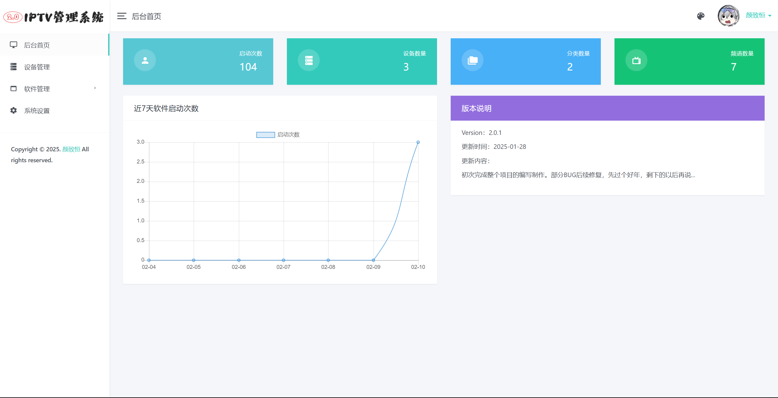 这是一个电视直播源管理系统,主要用于对接定制的DIYP影音,实现定制化的电视直播软件。软件对接教程请看后面。灵感来源于恩山无线论坛内的《IPTV管理系统》,因为有些功能我用这不是很方便,所以自己写了一个,感谢大佬们提供的DIYP软件,我只是根据接口写了后台。
